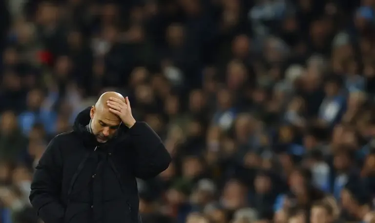 % ~& I4 m. y& @5 N曼城并不是在单一赛场萎靡不振,而是在所有赛场都陷入了困境。在英联杯,曼城被热刺淘汰出局。在英超赛场,曼城15场只拿到27分,排名第4,被榜首的利物浦甩开8分,第4的位置也是岌岌可危,毕竟只领先第5的诺丁汉森林2分而已。这种局面让瓜迪奥拉手足无措,这是他执教生涯所没有遭遇过的窘况。