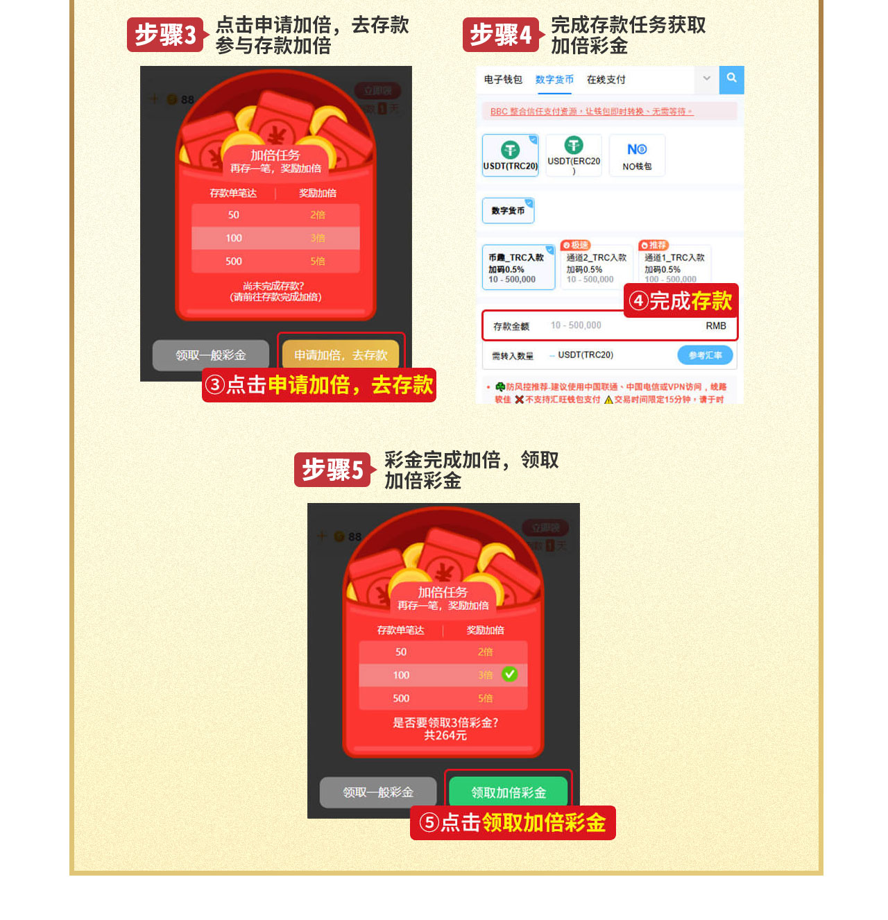 2.本活动计算【全渠道、免提直充入款】,除人工存入方式不列入计算。
