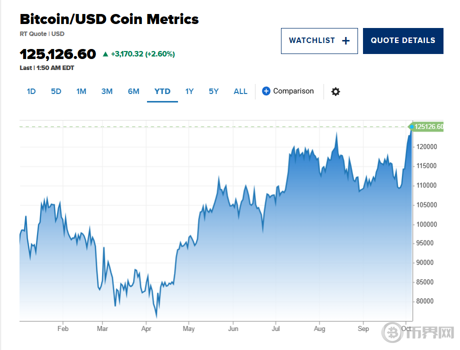美国ZF关门引发"贬值"交易热潮,投资者为对冲美元贬值风险,将资金转向比特币、黄金等资产,比特币周日最高触及125,689美元,再创历史新高。除ZZ不确定性外,机构需求增长、比特币ETF资金流入、企业囤币策略及10月季节性因素共同推动涨势。 美国ZF关门引发的"贬值"交易推动全球风险资产反弹,比特币价格再创历史新高。随着ZZ和经济不确定性加剧,投资者正将资金转向比特币、黄金等资产以对冲美元贬值风险。 全球最大加密货币周日(10月5日)在亚洲交易时段最高触及125,689美元,超越此前8月14日创下的124,514美元纪录。比特币此次上涨得到美股上涨和比特币相关交易所交易基金资金流入的支撑。 仅本周,比特币就上涨了12%,今年迄今累计上涨超过30%。市场参与者将美国ZF关门事件称为引发"贬值交易"的催化剂,投资者预期这将推动资金流向“避险”资产。 标准渣打银行全球数字资产研究主管Geoff Kendrick表示:"这次关门很重要。"他指出,比特币现在与传统风险资产的关联度更高,预计在此期间将继续上涨。 分析指出,比特币上涨还得益于机构需求与技术面,以及季节性因素的共同推动。值得注意的是,市场将密切关注国会就联邦资金问题的谈判进展,以及美联储货币政策走向对"贬值交易"逻辑的影响。这些因素将决定比特币能否维持当前涨势并实现进一步突破。 "贬值交易"推动多资产上涨风险资产普涨反映"贬值"担忧,多种资产同创新高。 除比特币外,美股周五也触及纪录高位,标普500指数和纳斯达克综合指数分别上涨0.5%和0.27%。现货黄金本周涨幅超过2%,实现连续第七周上涨。 加密货币经纪公司FalconX联席市场主管Joshua Lim表示: "包括股票、黄金甚至宝可梦卡片等收藏品在内的许多资产都创下历史新高,比特币受益于美元贬值叙事并不令人意外。"